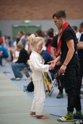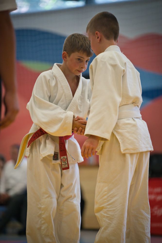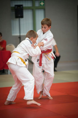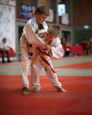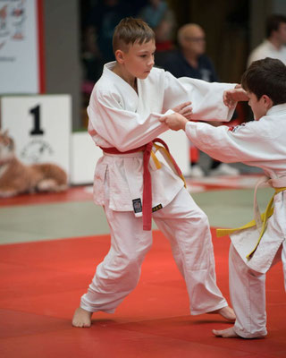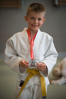 Den Anfang machte in der U9 Bjarne. Seine beiden Vorrundenkämpfe sowie das Halbfinale gewann er sicher durch ansehnliche Seio-Nage Formen. Nach langer Führung im Finale gab er kurz vor Schluss
