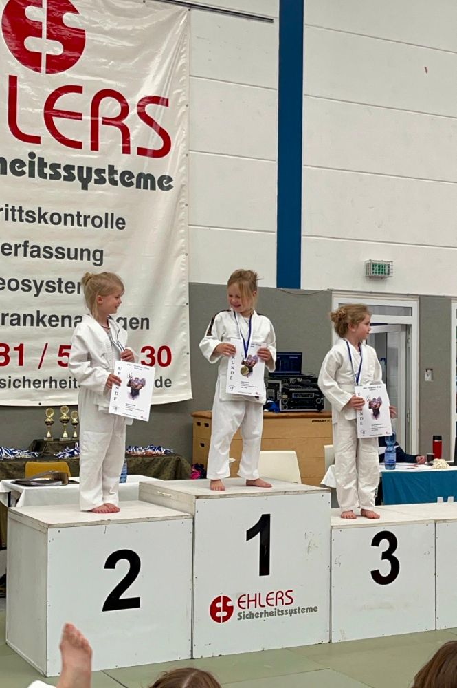 den drei Mädchen musste Annica Lehrgeld bezahlen. Sie verlor ihre beiden Kämpfe und wurde Dritte. Mia hat zwei Kämpfe gewonnen und zwei verloren, sodass am Ende ein dritter Platz auf der